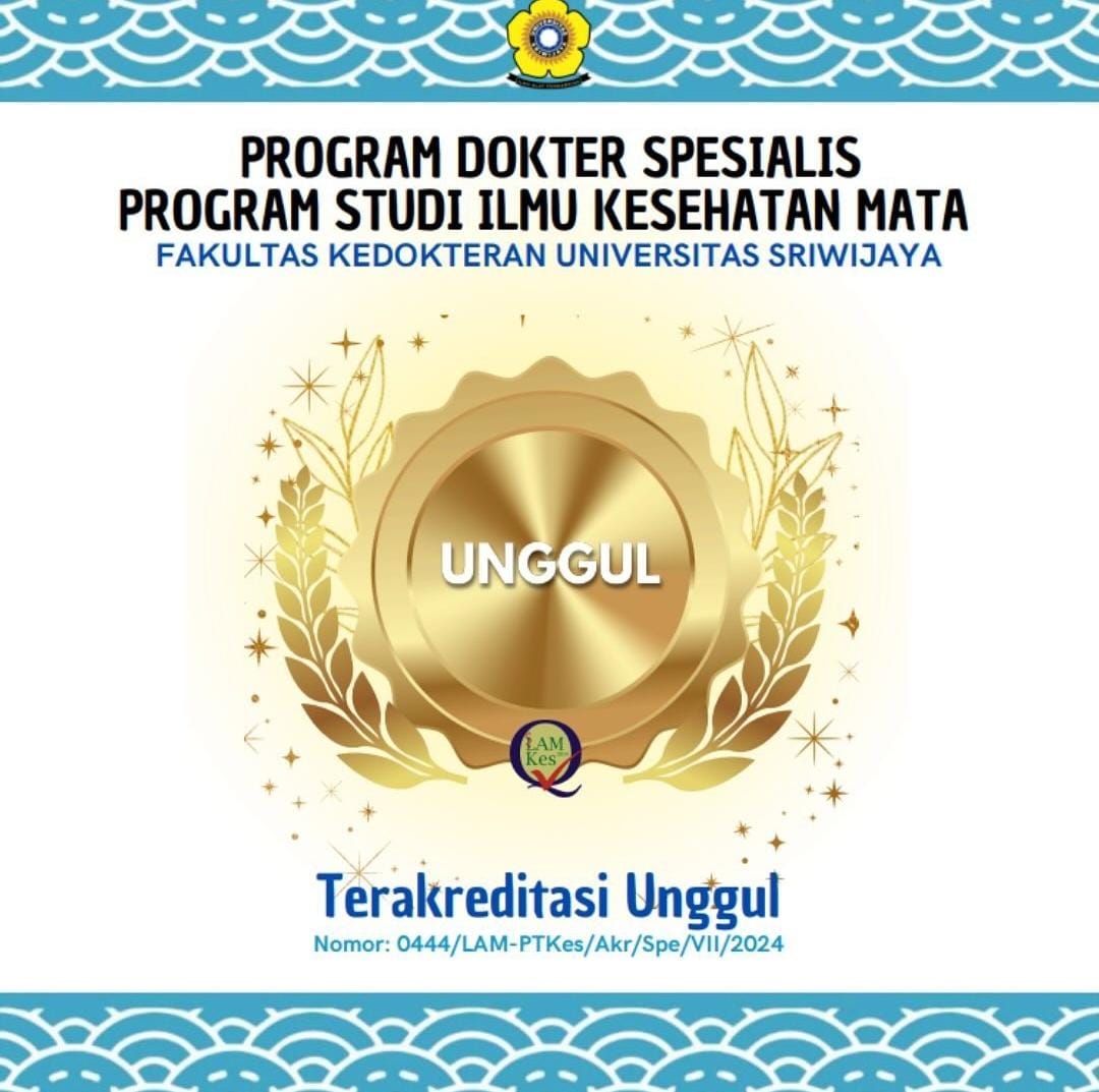 Izin Operasional Bagian Kesehatan Mata Fakultas Kedokteran Universitas SriwijayaSej Palembang berdasarkan Surat Keputusan Menteri Pendidikan dan Kebudayaan No.027/V/1980, tanggal 4 Desember 1980 FK yang menyatakan bahwa Unsri diberi kewenangan untuk melaksanakan Pendidikan Dokter Spesialis Mata.